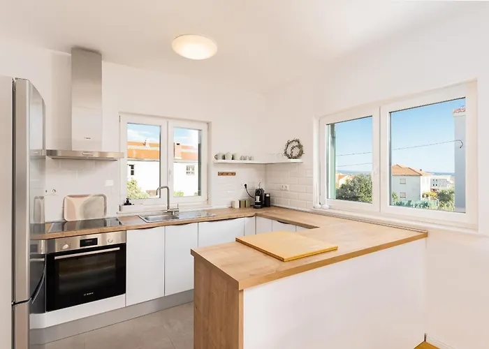 Voorzieningen voor zelf-bediening omvatten een ingerichte keuken met een oven en een vaatwasser. De dichtstbijzijnde bushalte bij dit 2-badkamer appartement is Kastel Luksic 1, het is op 5 minuten lopen ervandaan.